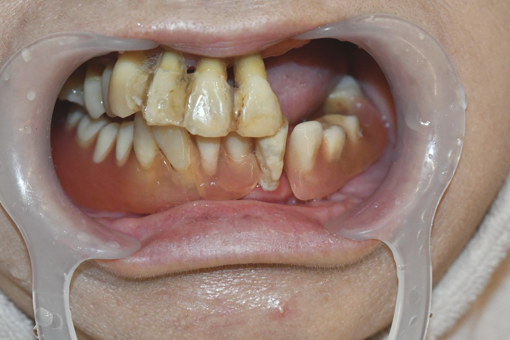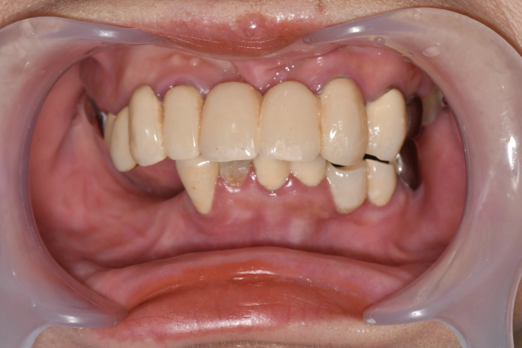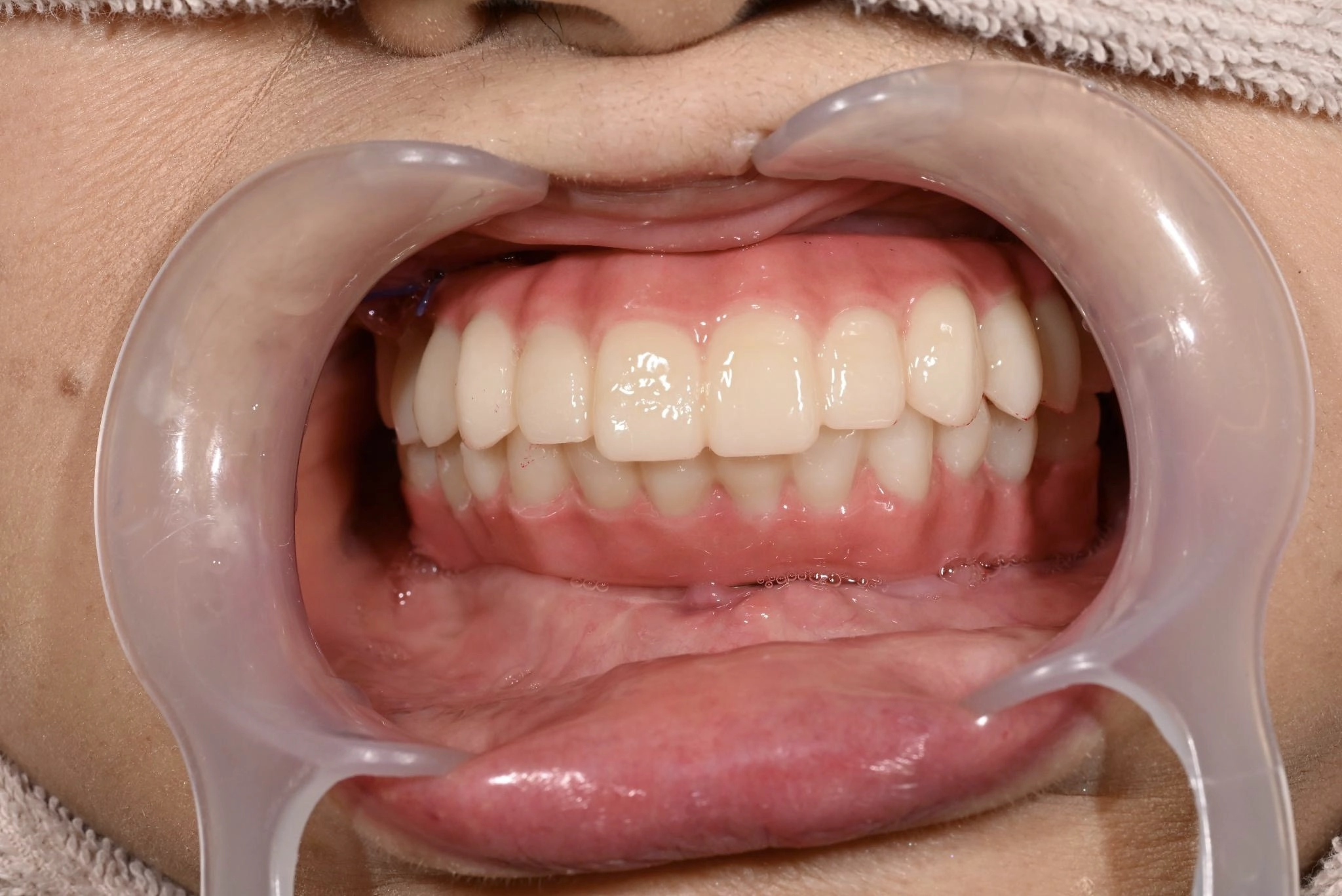 他院でインプラント治療を行っていましたが突然閉院となり、治療が中断されてしまいました。噛み合わせや歯並びに深刻な悩みを抱えることになり、口元の不安が負担になっていました。